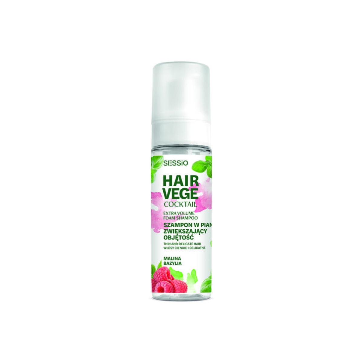 Szampon w piance zwiększający objętość, malina bazylia. Do włosów cienkich i delikatnych.
