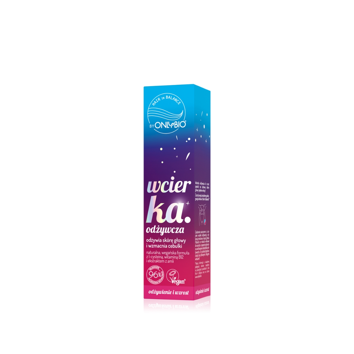 OnlyBio przygotowało dla Ciebie sposób na słabe, wypadające włosy. Wcierka odżywcza Hair in Balance sprawia, że kondycja skalpu ulega poprawie, a pasma mają idealne warunki do wzrostu. W efekcie wyglądają one zdrowo i pięknie, a fryzura staje się widocznie zagęszczona.