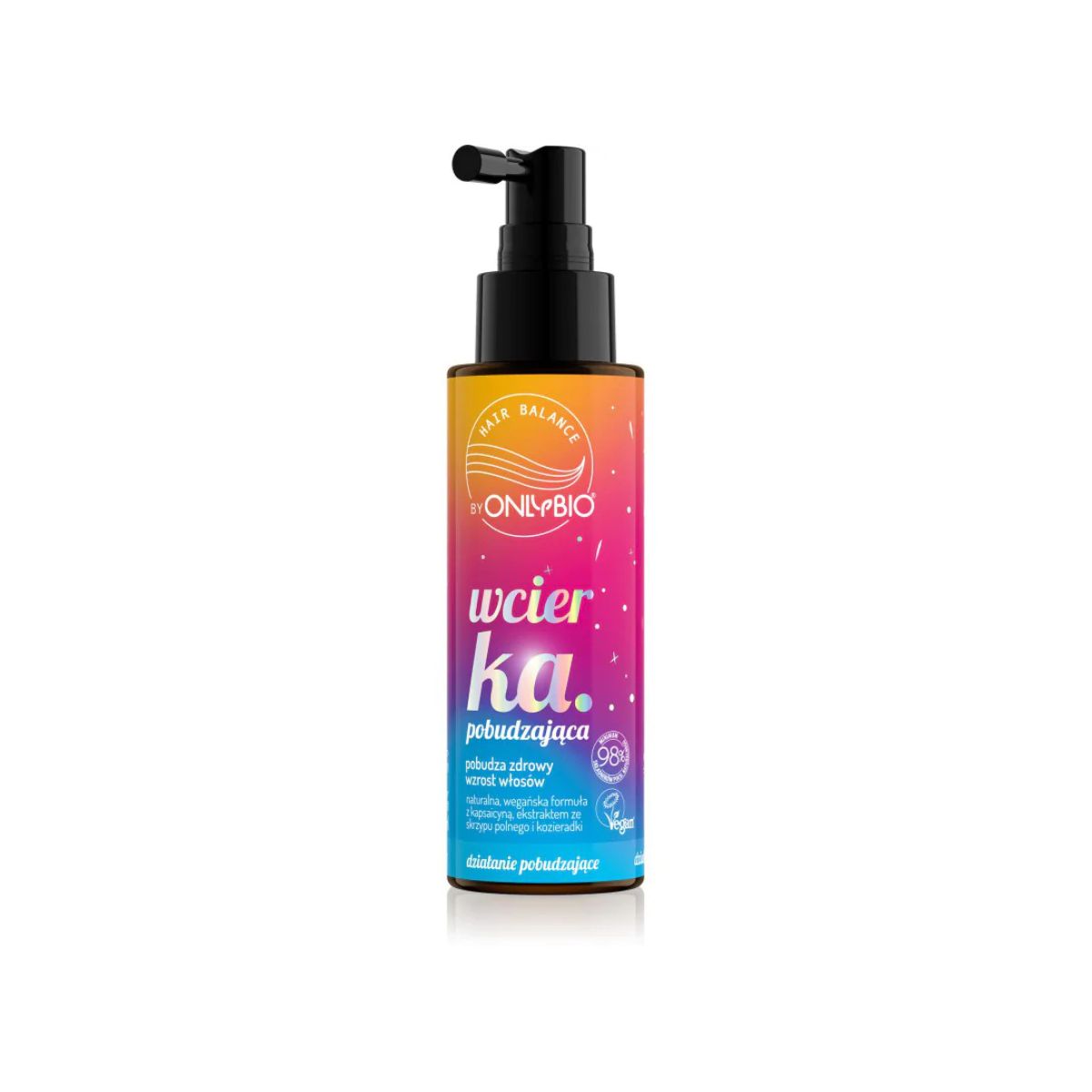 Naturalna wcierka pobudzająca wzrost włosów z kapsaicyną, skrzypem i kozieradką. Wzmacnia cebulki, pachnie maliną i różowym pieprzem.